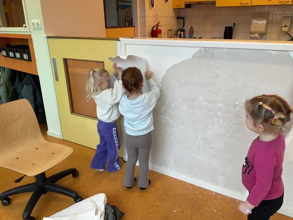 Op één muur gaat het behang eraf. Om klusjesman Cor een handje te helpen, mochten wij alvast het behang van de muur trekken. Wat een mooi klusje!