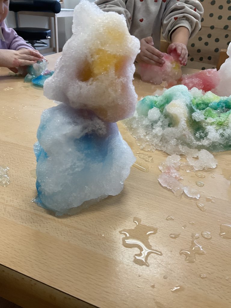 Wij hebben sneeuw naar binnen gehaald en de kinderen gingen ontdekken wat ze ermee konden doen. Wat gebeurt er met de sneeuw?!
