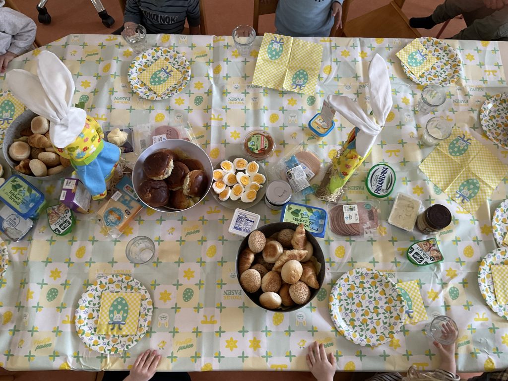 De kinderen mochten in pyjama komen. Samen op een matras was het extra gezellig. Bertine las ons het boekje Kleine Aap voor. En na het voorlezen gingen we met zijn allen ontbijten!