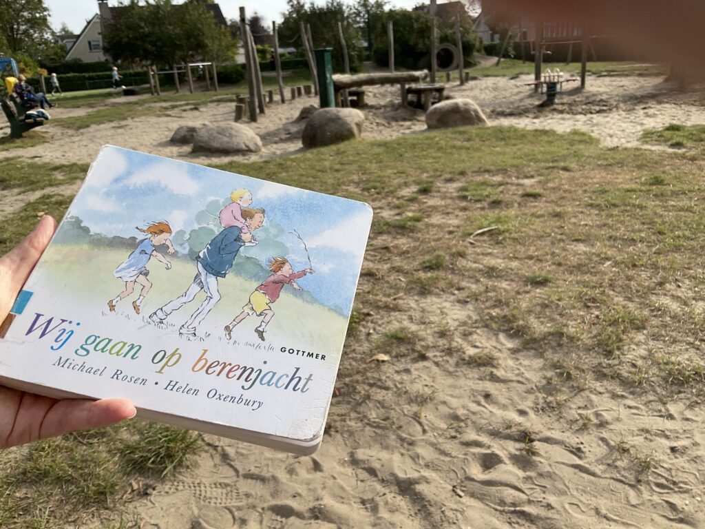 We lopen door het gras, door de rivier, door de modder, door de storm, door het woud, door de tunnel en wat is dat? Een beer! Snel rennen we weer terug naar het huis. Toch wel spannend?