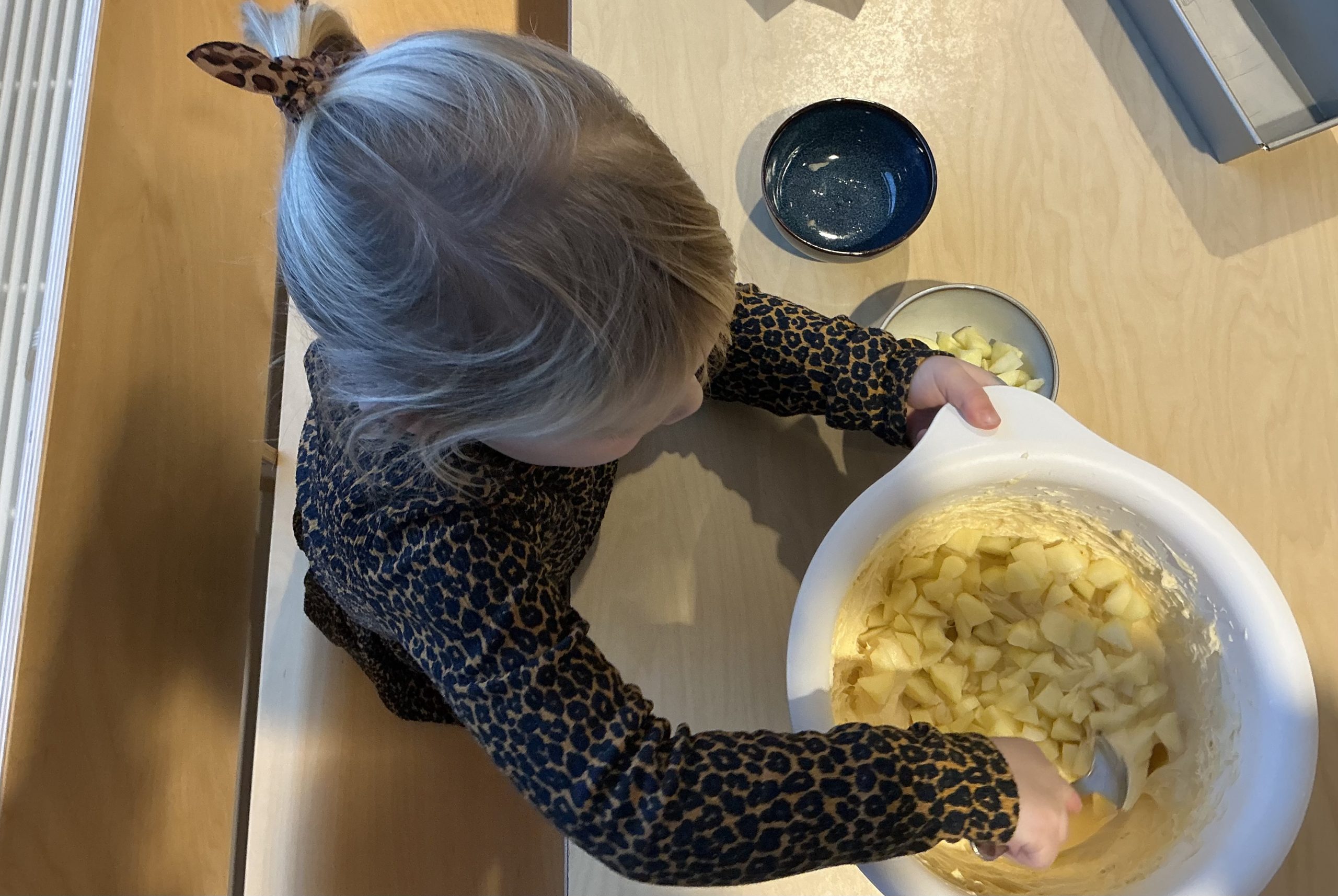 Vandaag bakten we op de bso Ruigedoornstraat samen een appelkaneelcake. De kinderen hielpen met snijden en mengen. Het ruikt heerlijk!