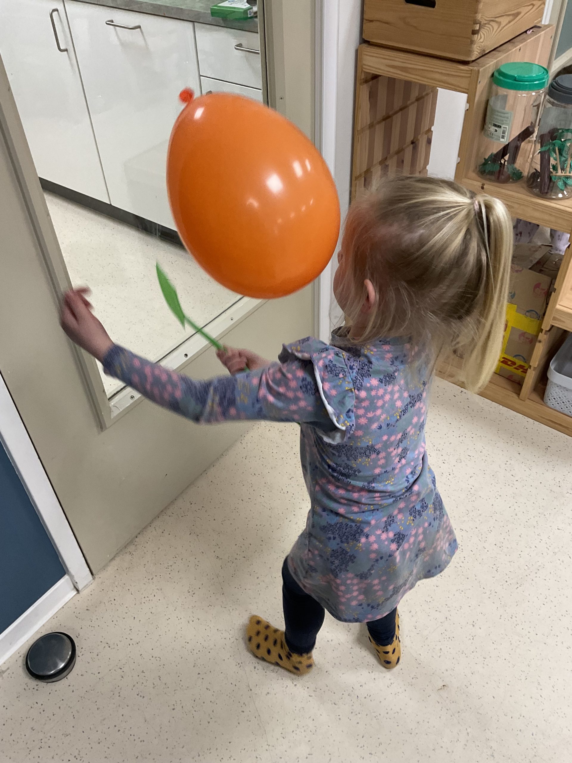 Vandaag speelden we een leuk spel met ballonnen en een vliegenmepper!