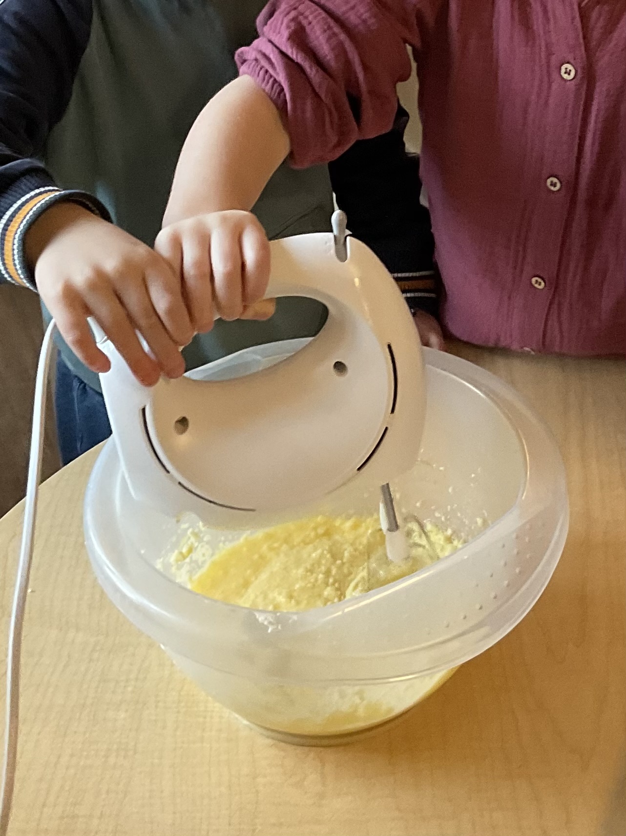 Samen maakten we heerlijke bananencupcakes. De kinderen voegden alle ingrediënten stap voor stap zelf toe. Vele handen maken licht en samen de mixer bedienen is extra handig én leuk!