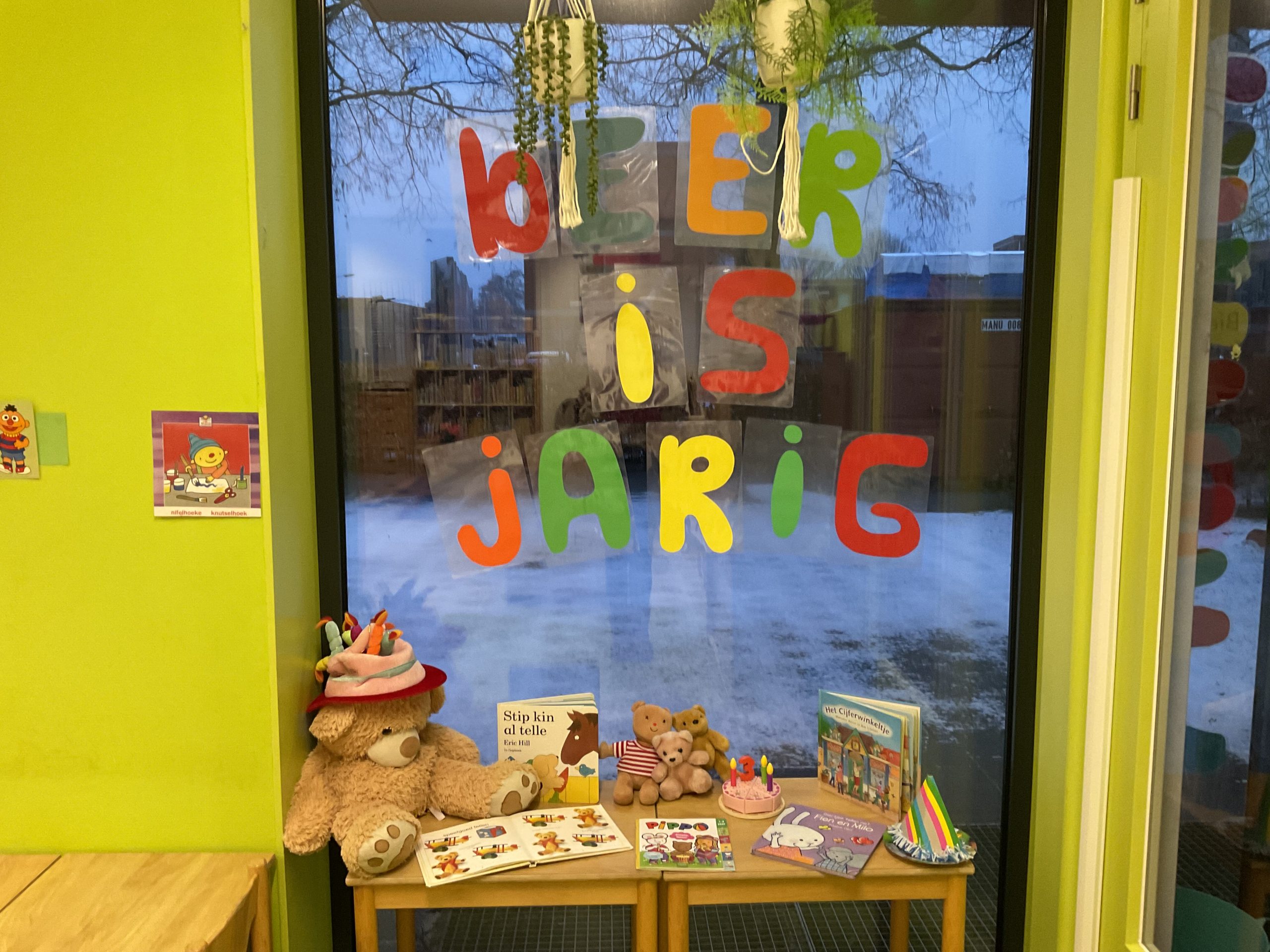 Vorige week zijn we begonnen met het thema ‘Beer is jarig’. Beer is 3 jaar geworden en dit project gaat over tellen; hoeveel kaarsjes zijn er, hoeveel cadeautjes, slingers en vriendjes. Leuk en leerzaam!