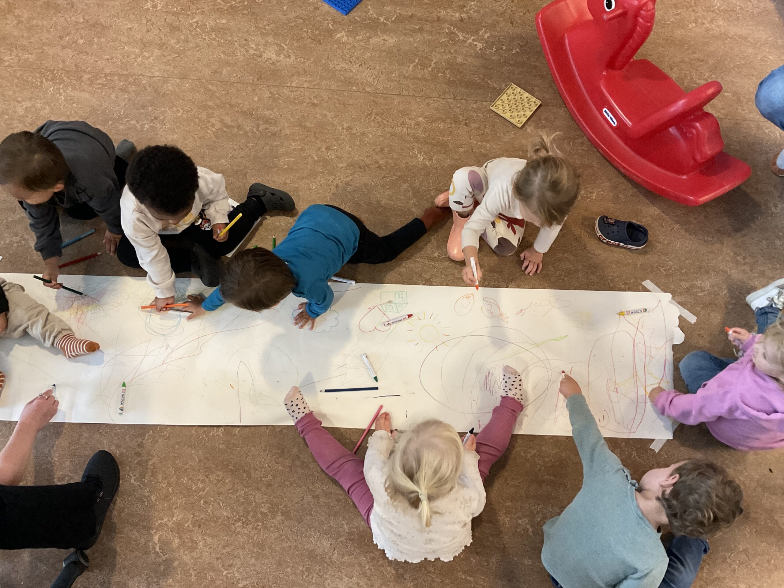 Wat een slecht weer is het iedere keer, de kinderen zijn heerlijk aan het tekenen. Wat een creativiteit!