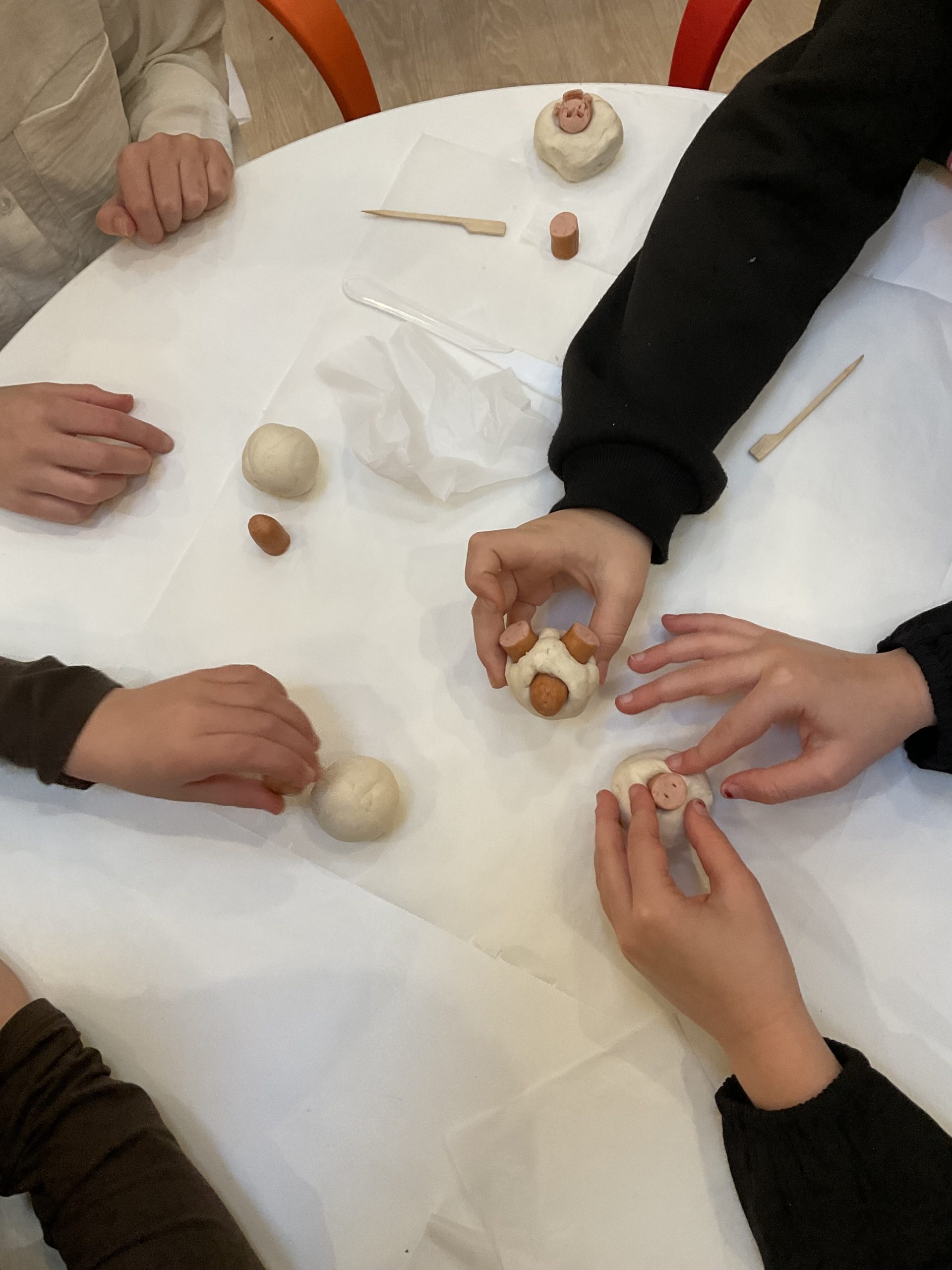 Met het gladde weer bleven we vandaag lekker binnen. Tijd om samen te bakken! De kinderen maakten bladerdeeg biggetjes en gingen aan de slag met rollen, vormen en versieren.