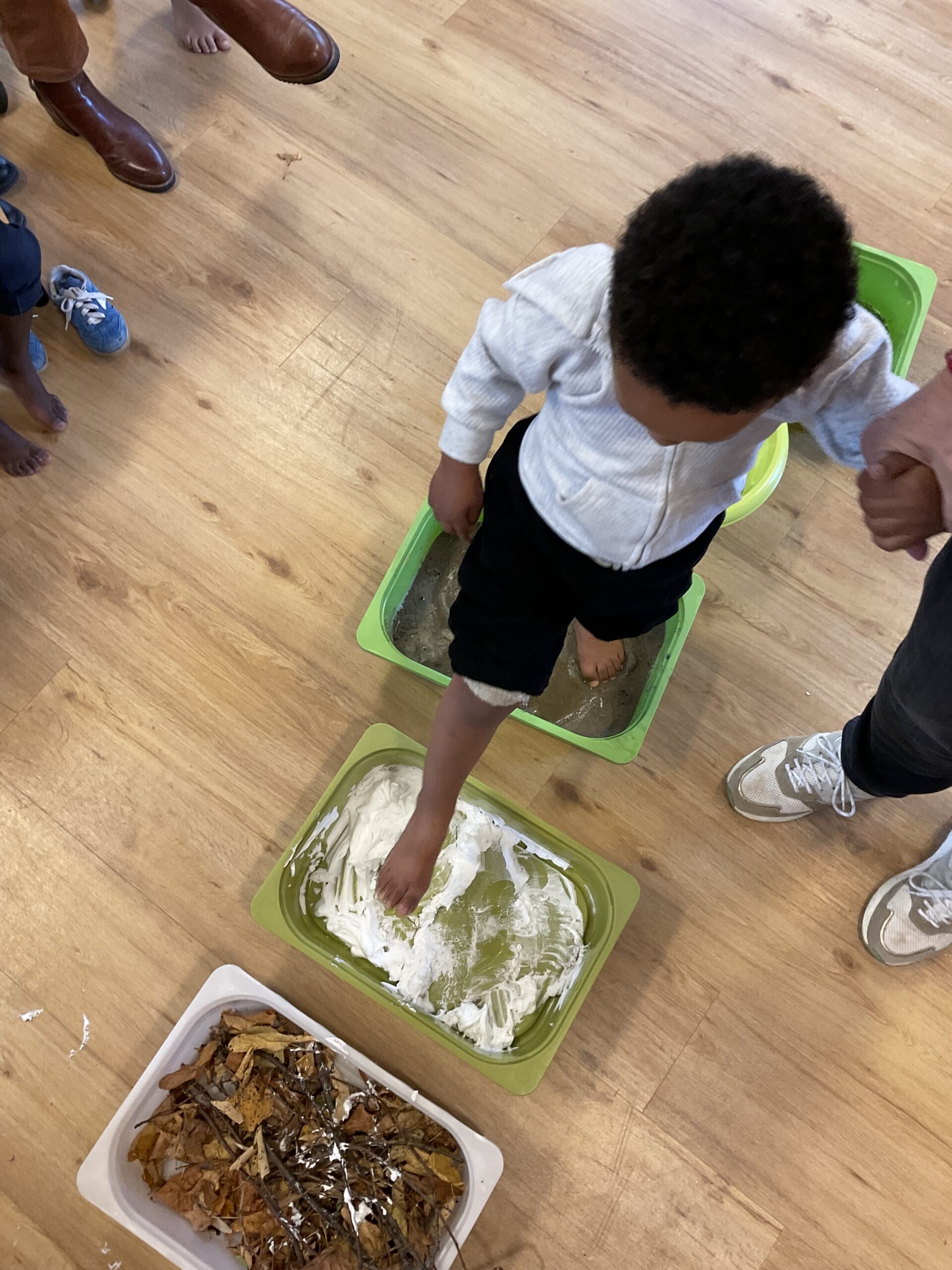 In het thema “wij gaan op avontuur”, hebben wij het boek gelezen “wij gaan op berenjacht”. Aan het einde van dit thema hebben wij met de peuters zelf door het blote voetenpad gelopen.