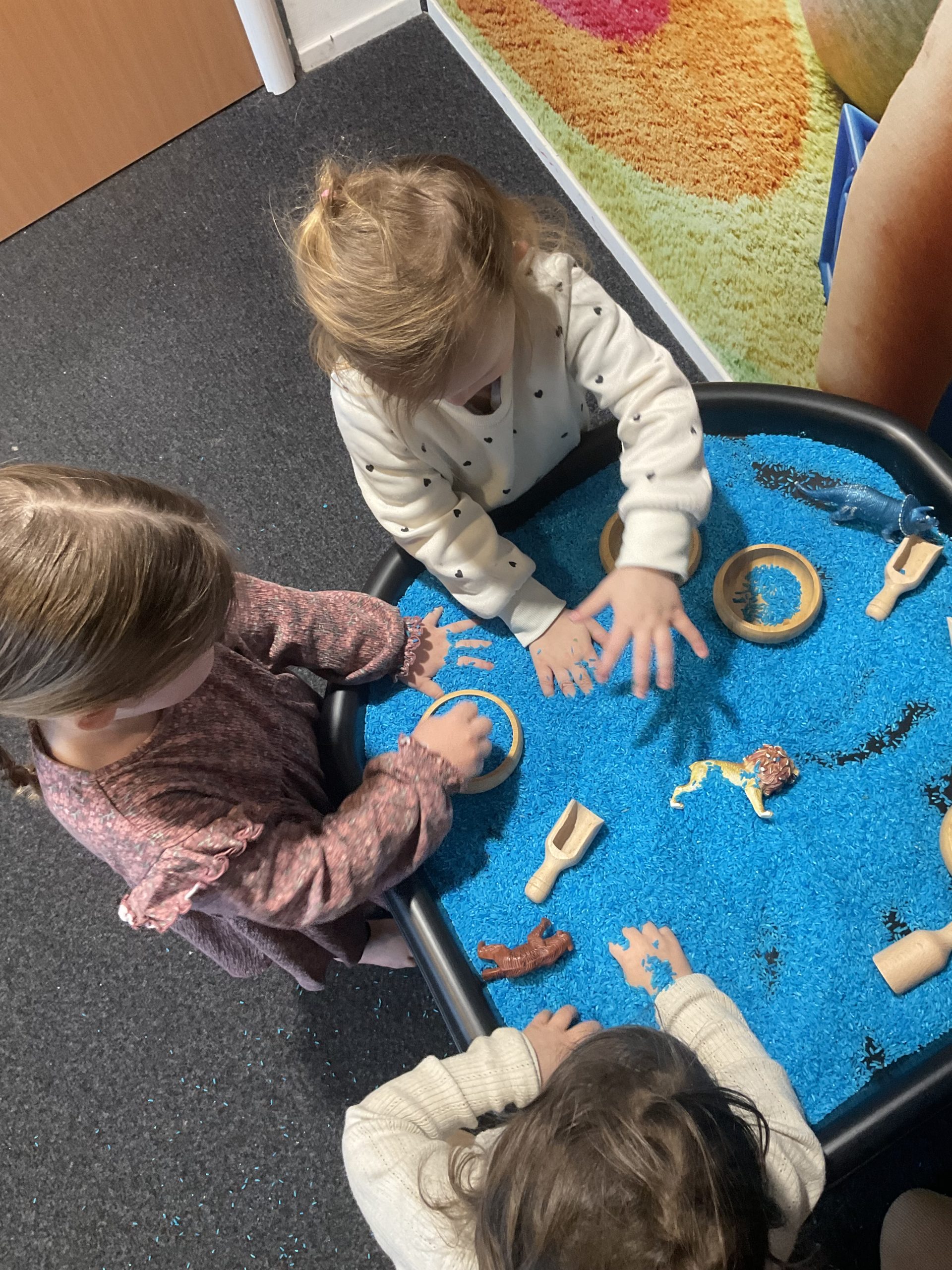 Meer heb je niet nodig om je te verwonderen: een tafel vol rijst, een bakje, een schepje en wat diertjes. En… drie hele gezellige kletstantes!