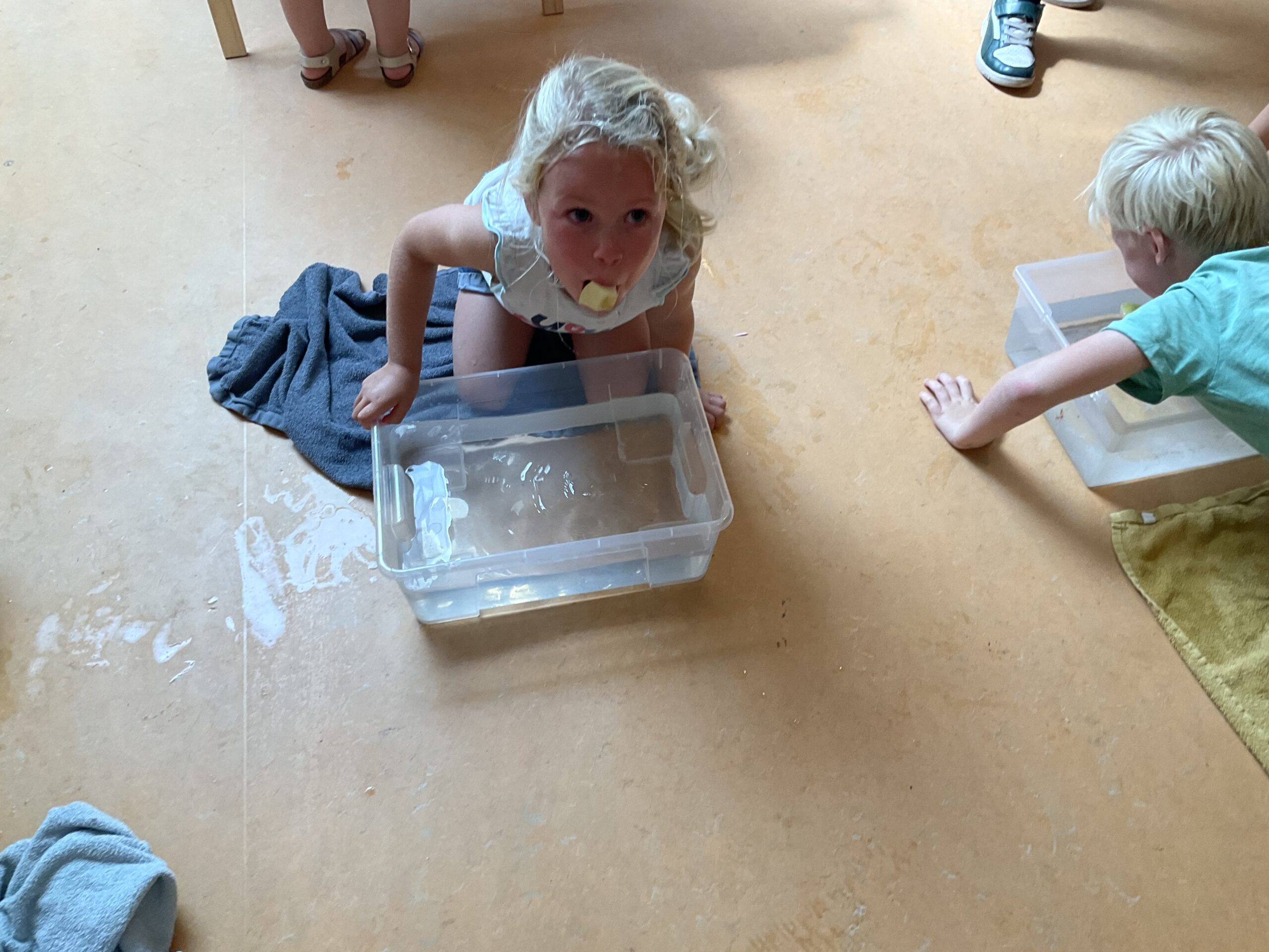 Bij warm weer doen we veel activiteiten met water. Na een warme schooldag gaan we fruit happen! Daar worden we weer fris en fruitig van!