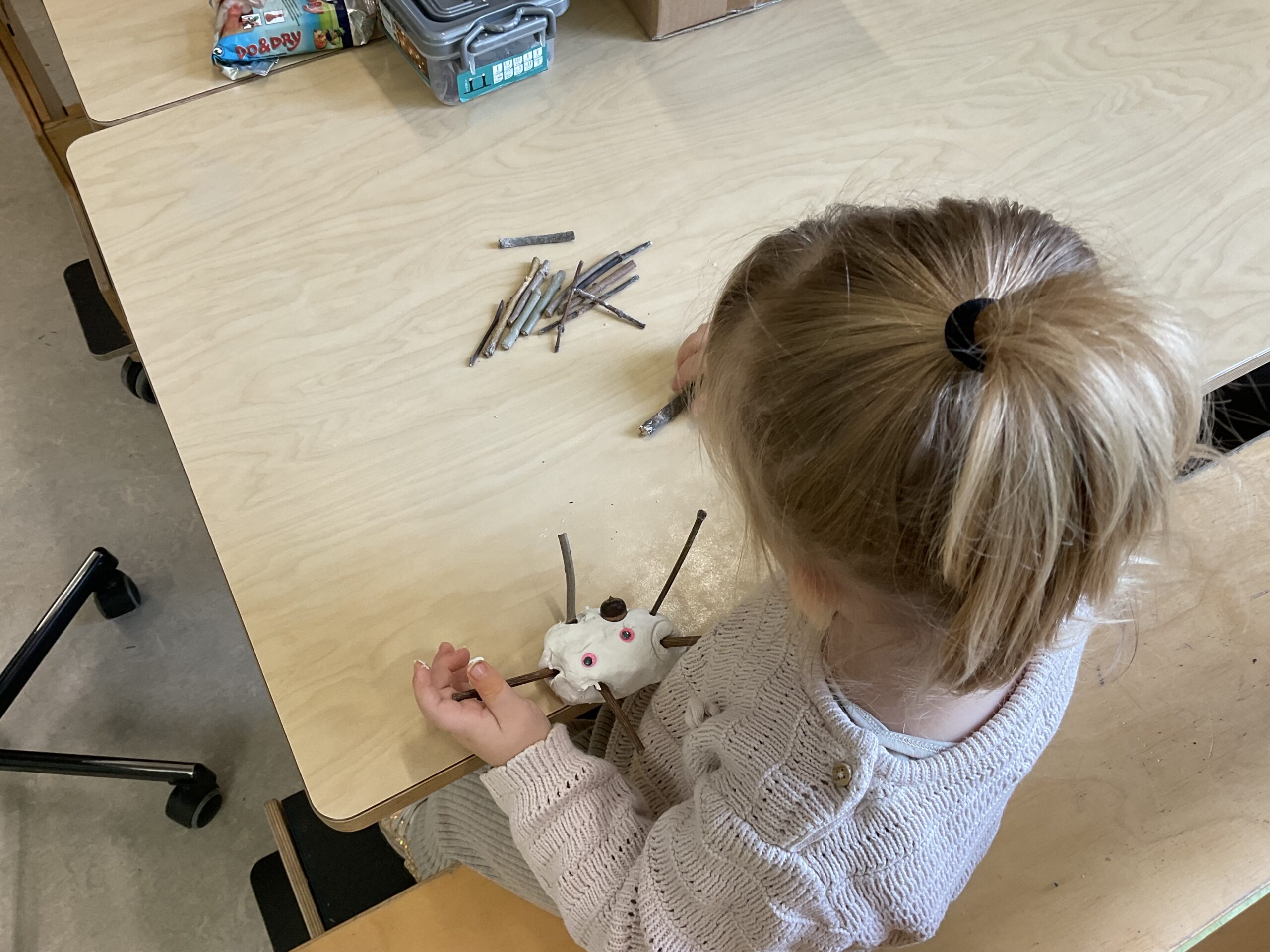 We zitten volop in de herfst, niet alleen buiten, maar ook in de klas. Van klei maken we gezellige egeltjes: met wiebeloogjes, een eikeltje als neus en takjes die we buiten zelf gezocht hebben.