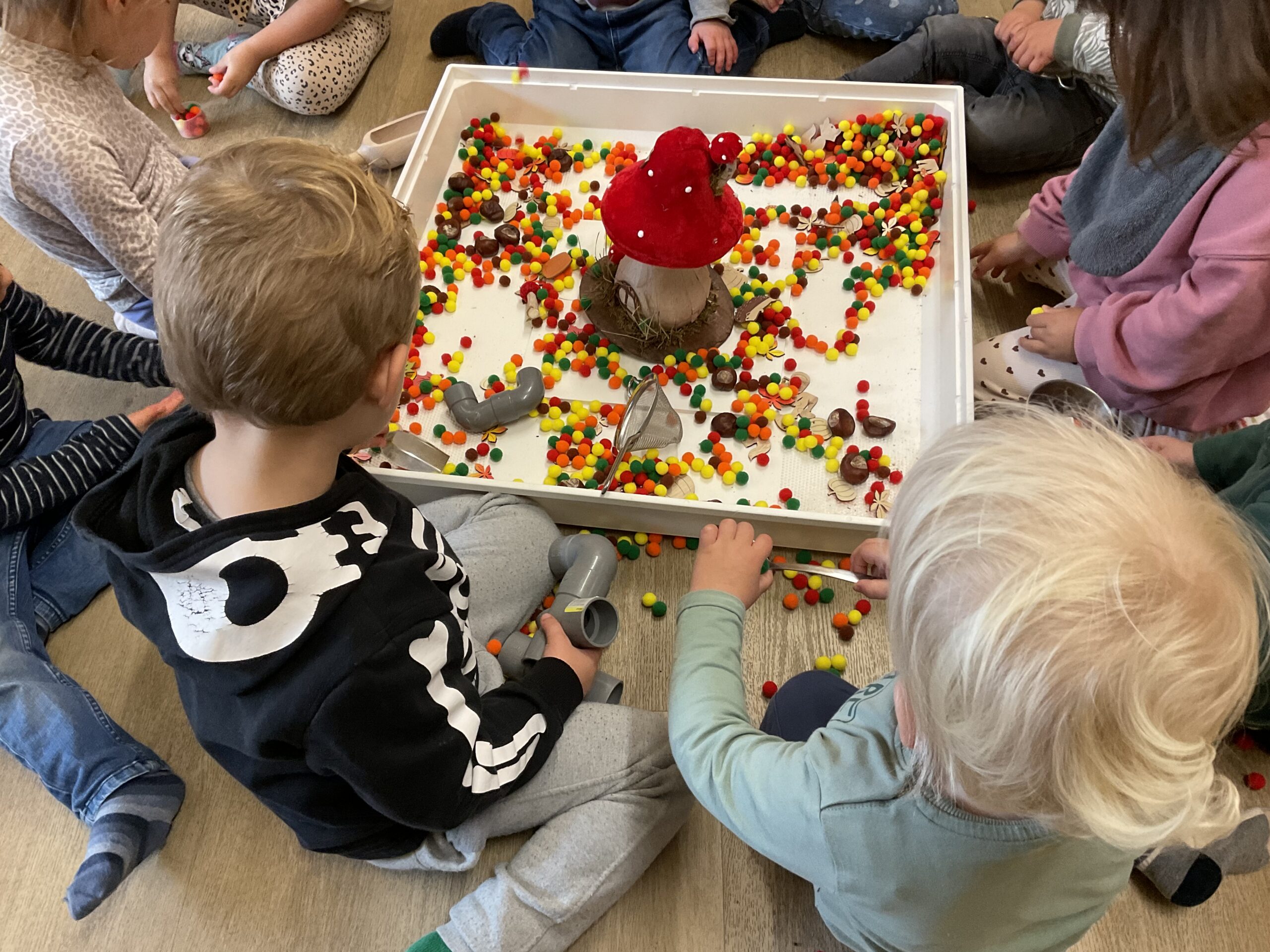 Ontdekken, herfstkleuren, vullen en legen met herfstmaterialen!