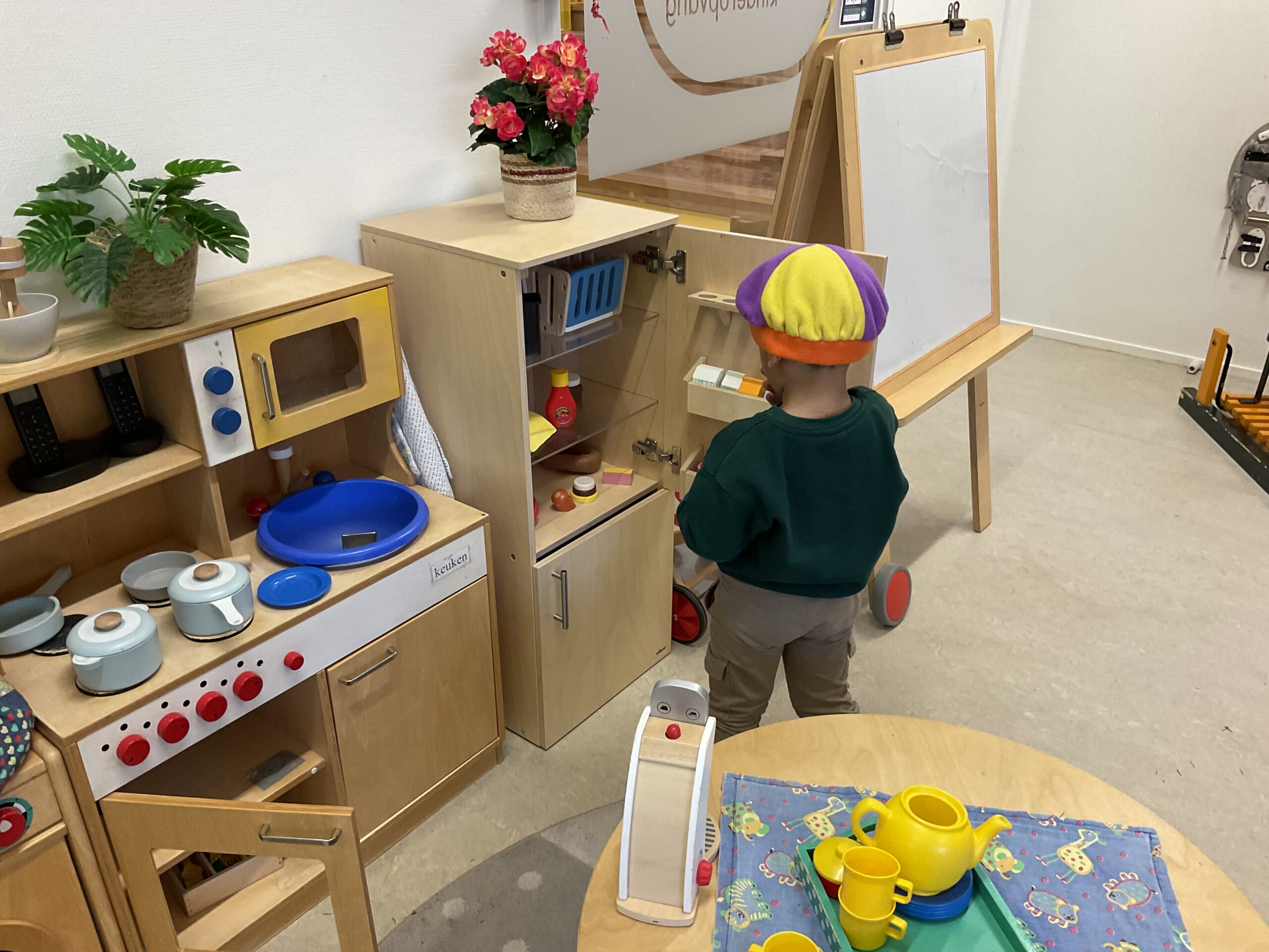 Sinterklaasthema of niet, de huishoek blijft altijd een aantrekkelijke hoek om in te spelen. Met een pietenmuts op kun je immers ook eten koken!