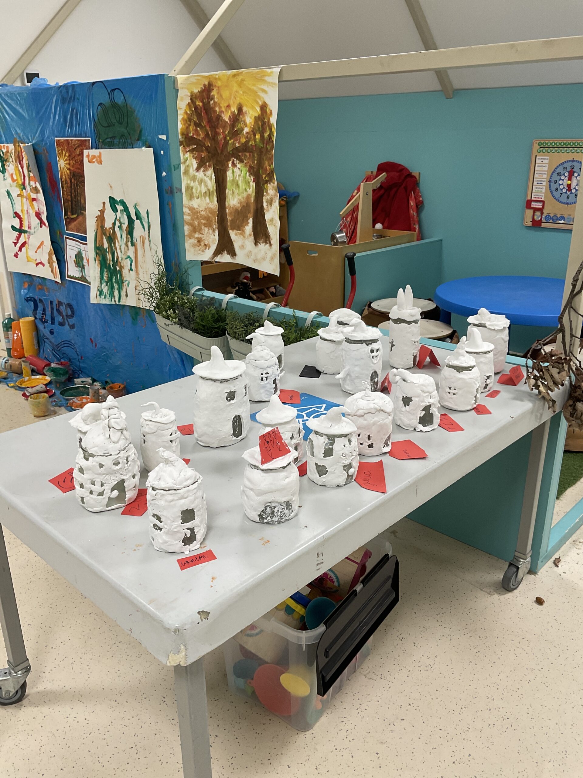 De kinderen zijn druk bezig geweest met kabouter huisjes maken. waxinelichtjes erin en wat een leuke sfeer creëer je.
