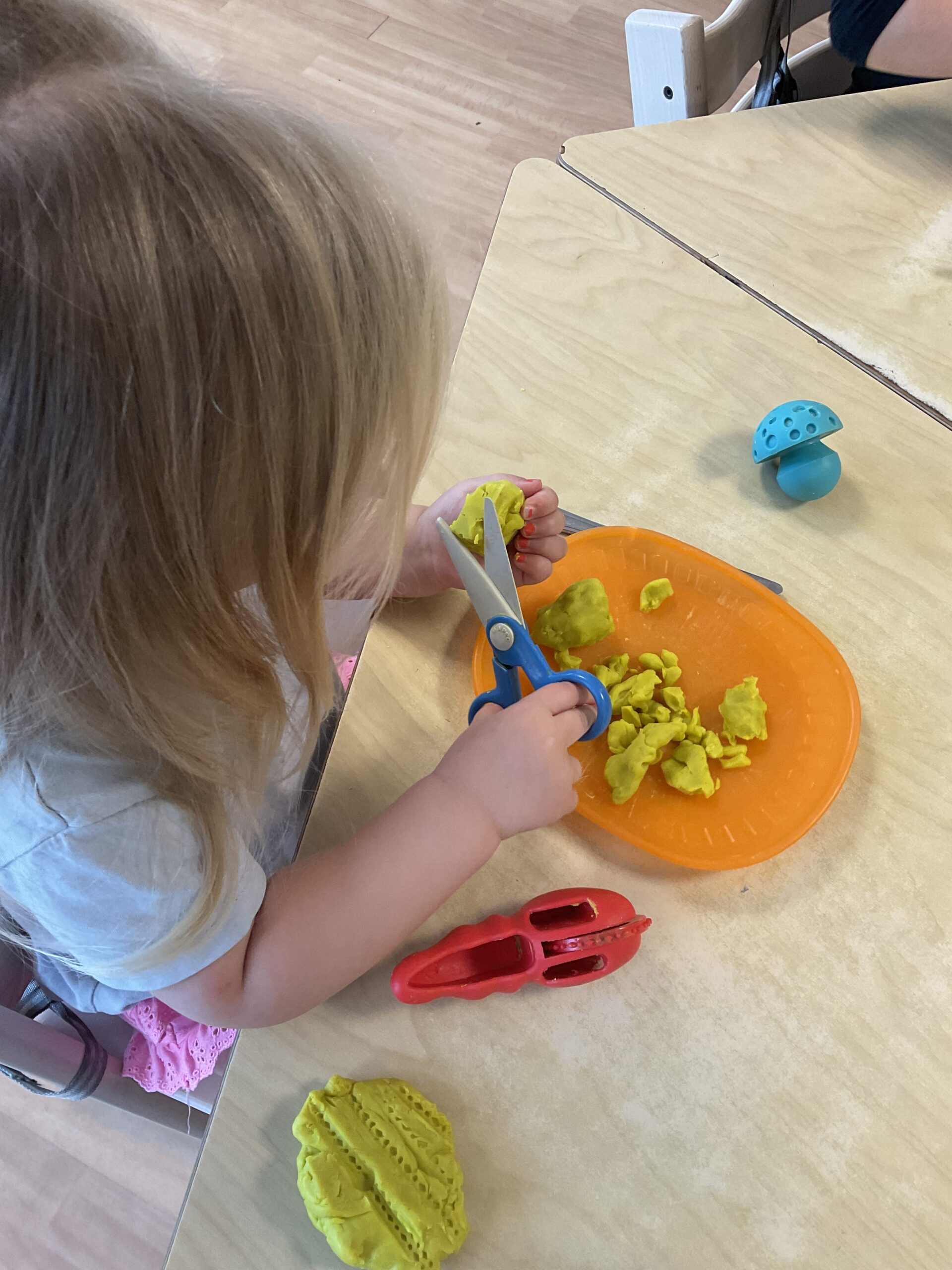 Creatief bezig zijn dit keer met klei. Goed voor de fijne motoriek. Druk met rollen, knippen en vormpjes maken. Ook is er tussen de kinderen een leuke interactie en natuurlijk samen delen.
