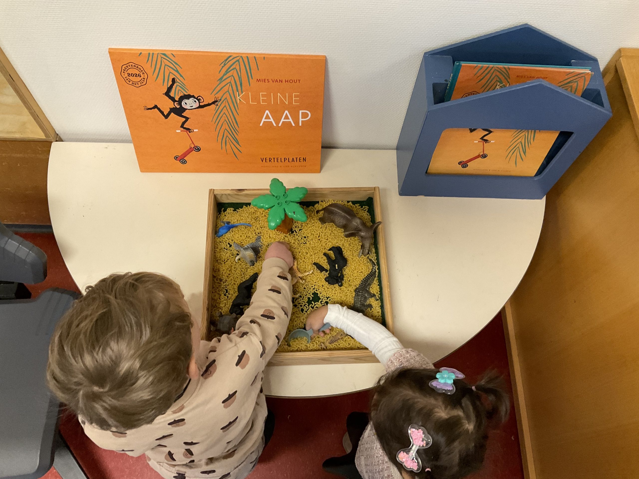 Spelen aan de verteltafel met de dieren van kleine aap!