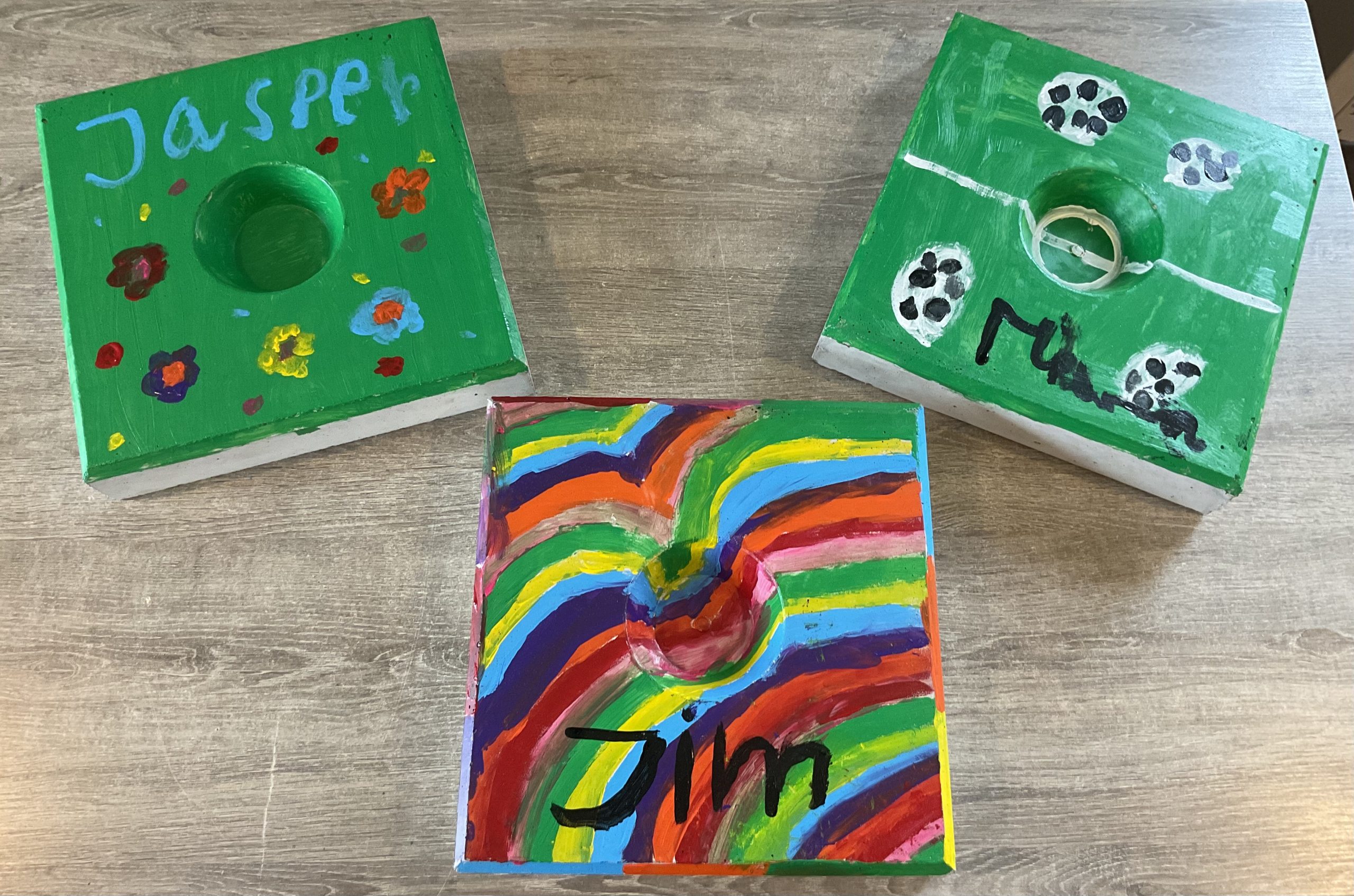 De kinderen ontwierpen eerst hun eigen knikkerpot op papier en verfden het ontwerp daarna op een tegel. Wat een prachtige resultaten!