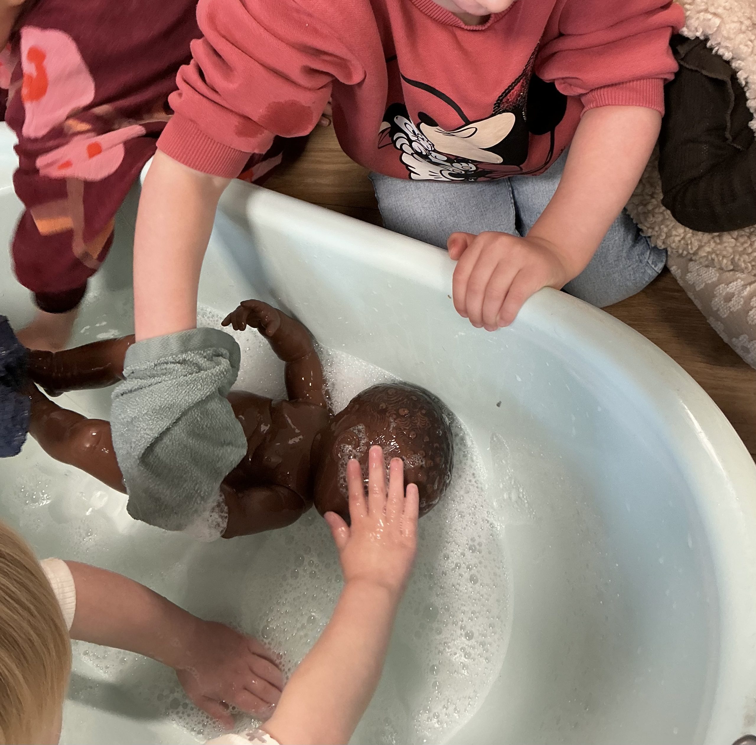 De kinderen vroegen of de poppen in bad mochten. Tuurlijk mag dat! We pakten de spullen erbij en de poppen waren nog nooit zo schoon.