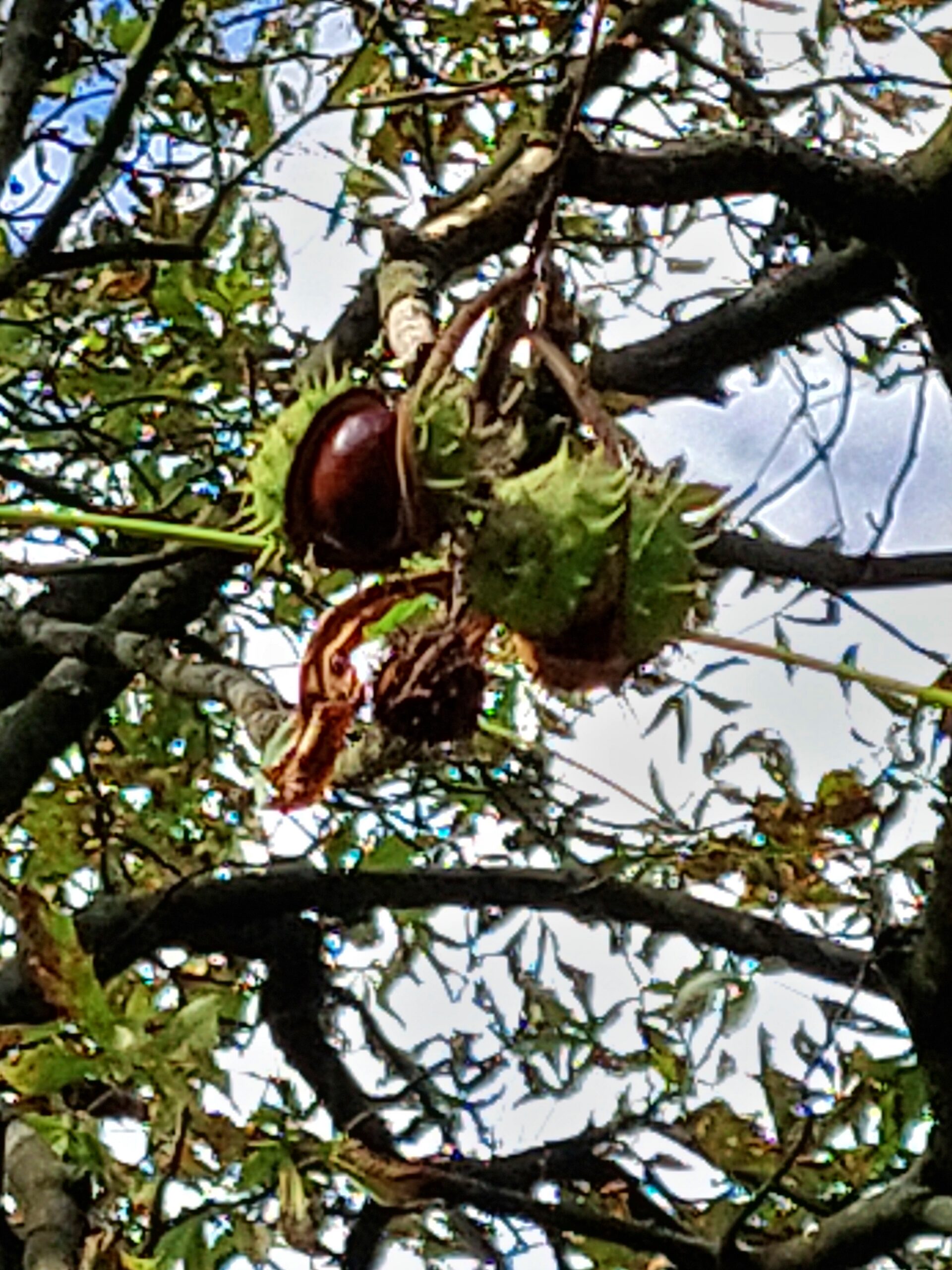 Kijk eens wat we hier in de boom vinden! “Een kastanje met zijn huisje”