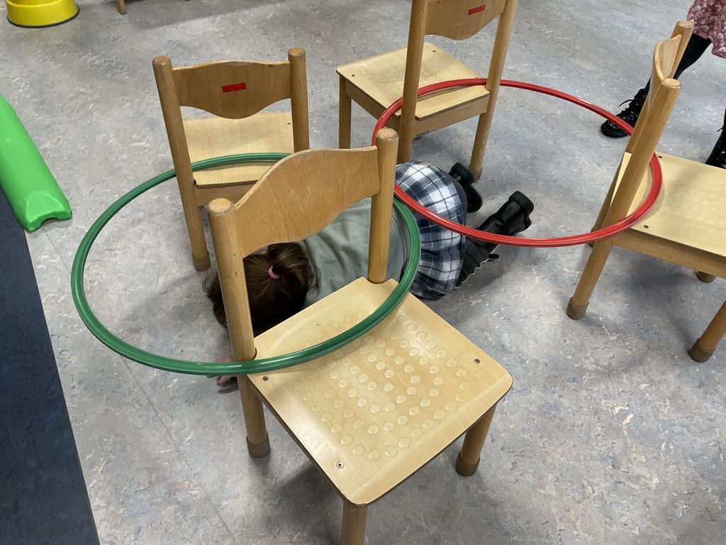 De kleutergymzaal was dicht, dus haalden we de materialen gewoon naar de groep. Zo bleven we lekker in beweging!