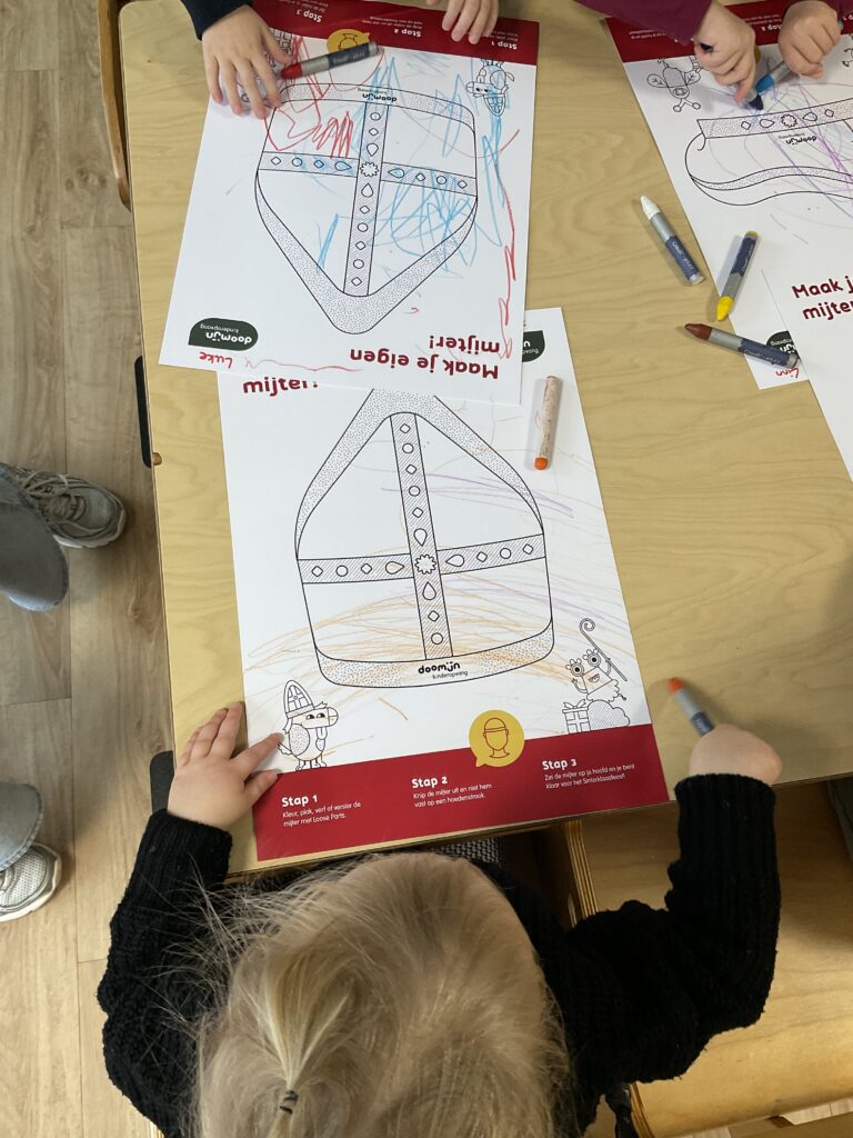 We kleuren de Doomijn mijters en pietenmutsen. Zo zijn we helemaal klaar voor de intocht van Sinterklaas!