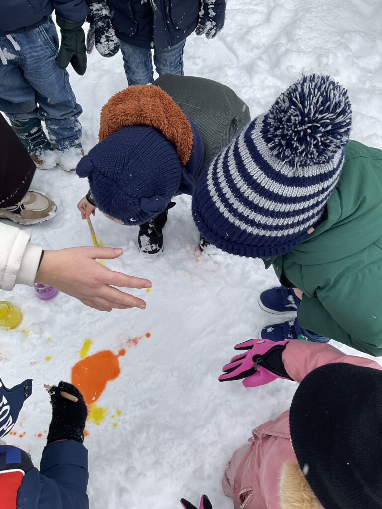 Het sneeuwt, lekker verven in de sneeuw dat was leuk!
