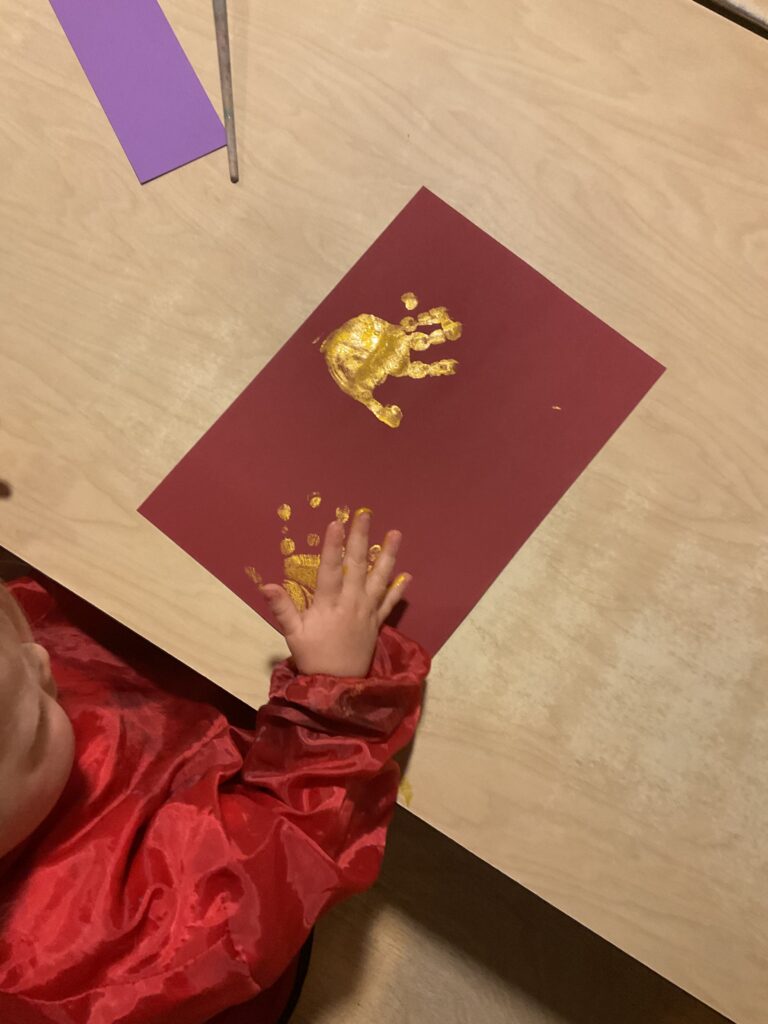 We spelen niet met vuurwerk maar maken het met onze handen. Mooie gouden spetters, straks nog wat andere kleurtjes erbij en dan lijkt het net echt!
