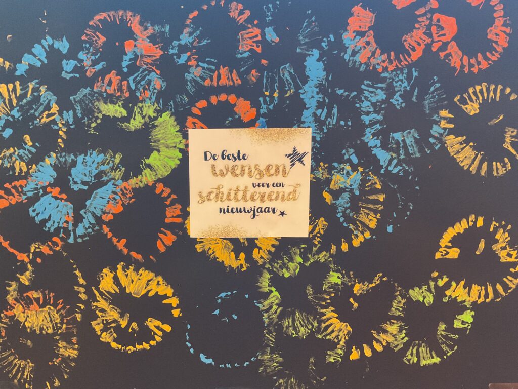 We gaan het nieuwe jaar knallend in met ons eigen gemaakte kunstwerk van vuurwerk. Door creatief te zijn met verf en wc rollen hebben we een kleurrijk kunstwerk gemaakt!