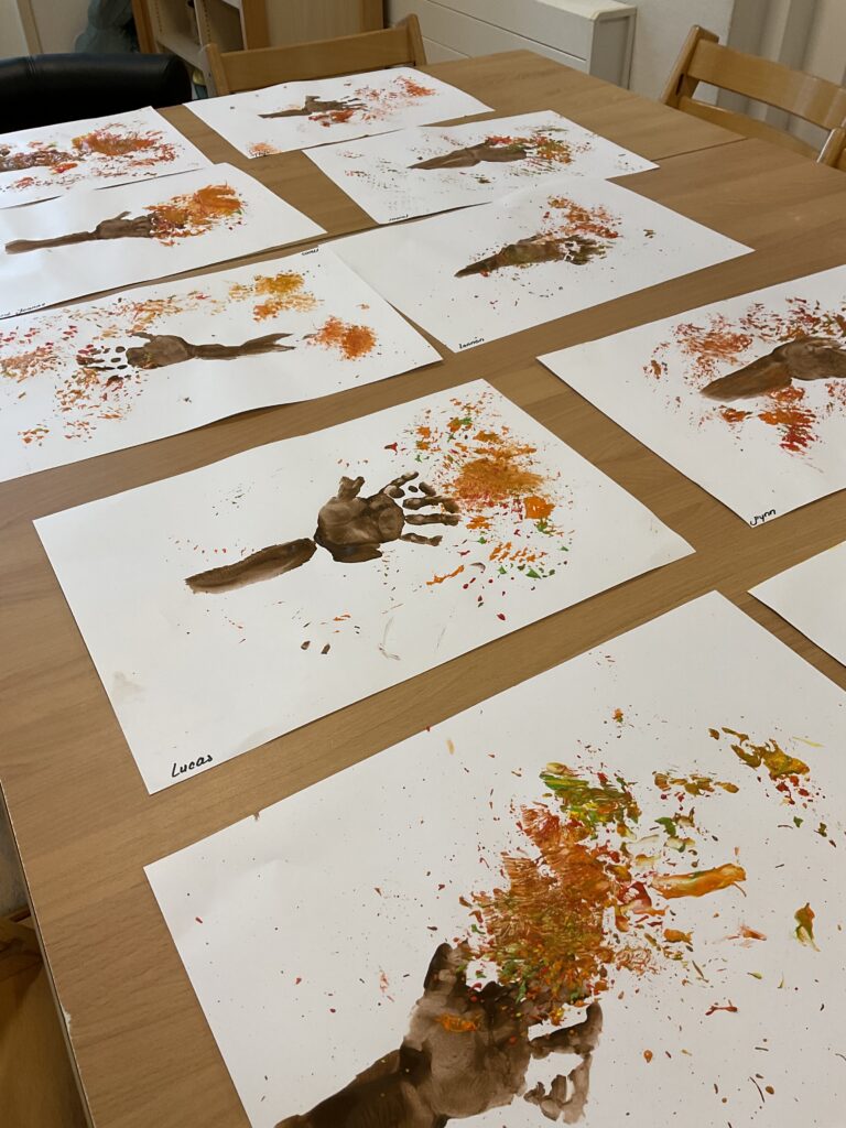 De kinderen hebben zelf bedacht om een herfsttafel te maken van zelf gevonden herfstmaterialen, een waar kunstwerk toch?!