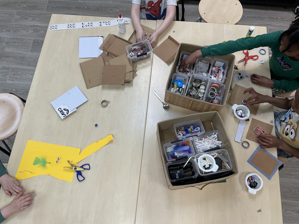 De kinderen mochten zelf allerlei materialen op een schilderij plakken! En dat vonden ze superleuk om te doen!