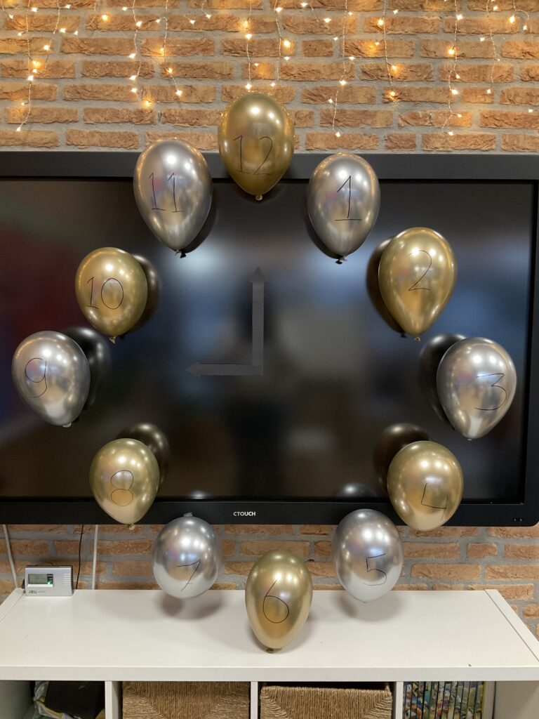 Wij luiden vast het nieuwe jaar in! Elke minuut prikken we een ballon kapot en daar zit een leuke opdracht in.