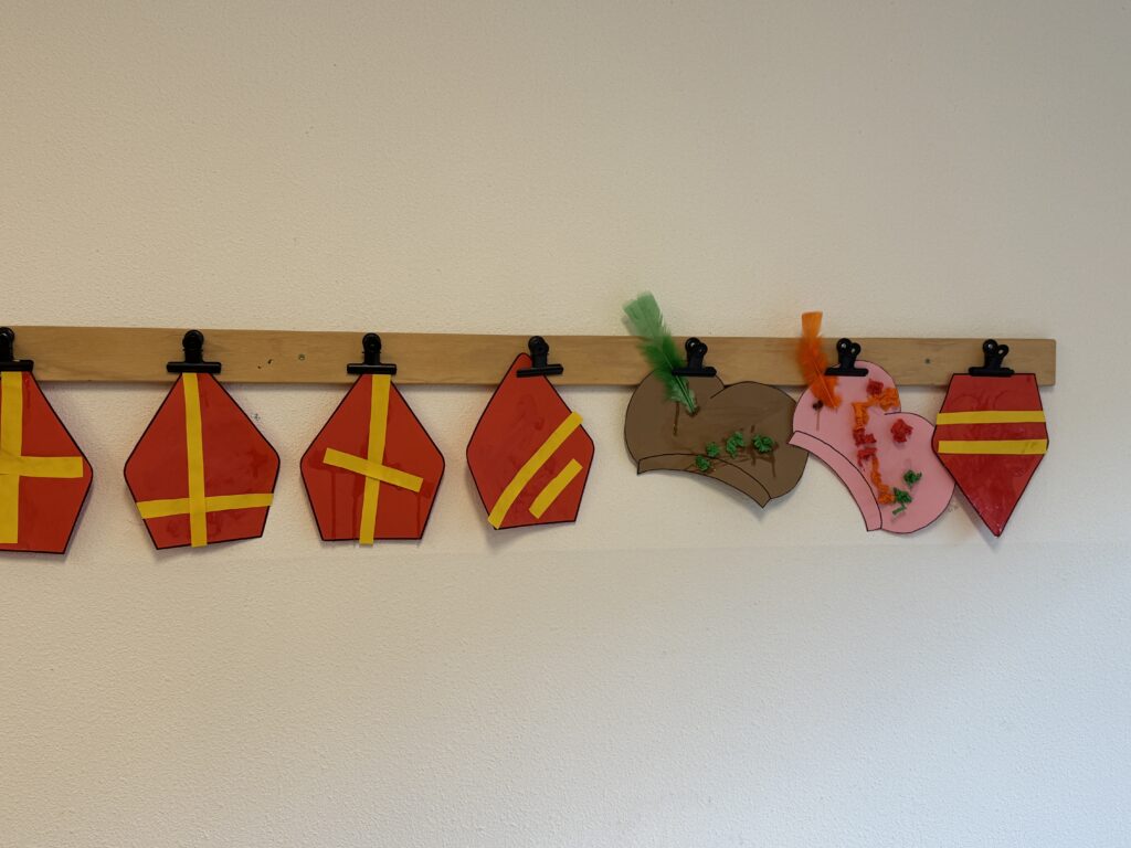 De lieve Sint en Piet zijn weer in ons land. En de kinderen hebben mooie Sintmijters en Pietenmutsen gemaakt! Wat een gezelligheid op de groep.
