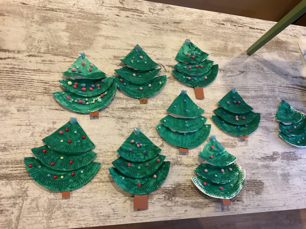 Wij zijn druk bezig geweest met het knutselen van kersbomen. Wat zijn ze mooi geworden!