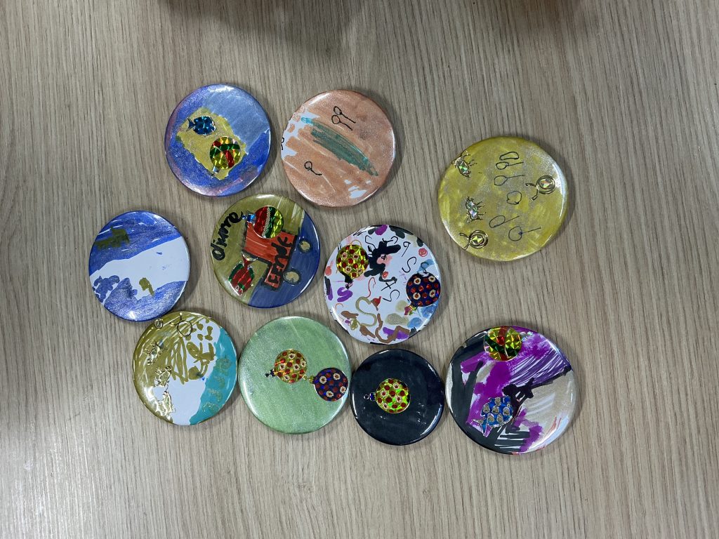 Vandaag hadden we een workshop buttons maken. De kinderen bedachten zelf hoe hun button eruit kwam te zien en trokken daarna aan de hendel om er een echte button van te maken. Wat een trots!