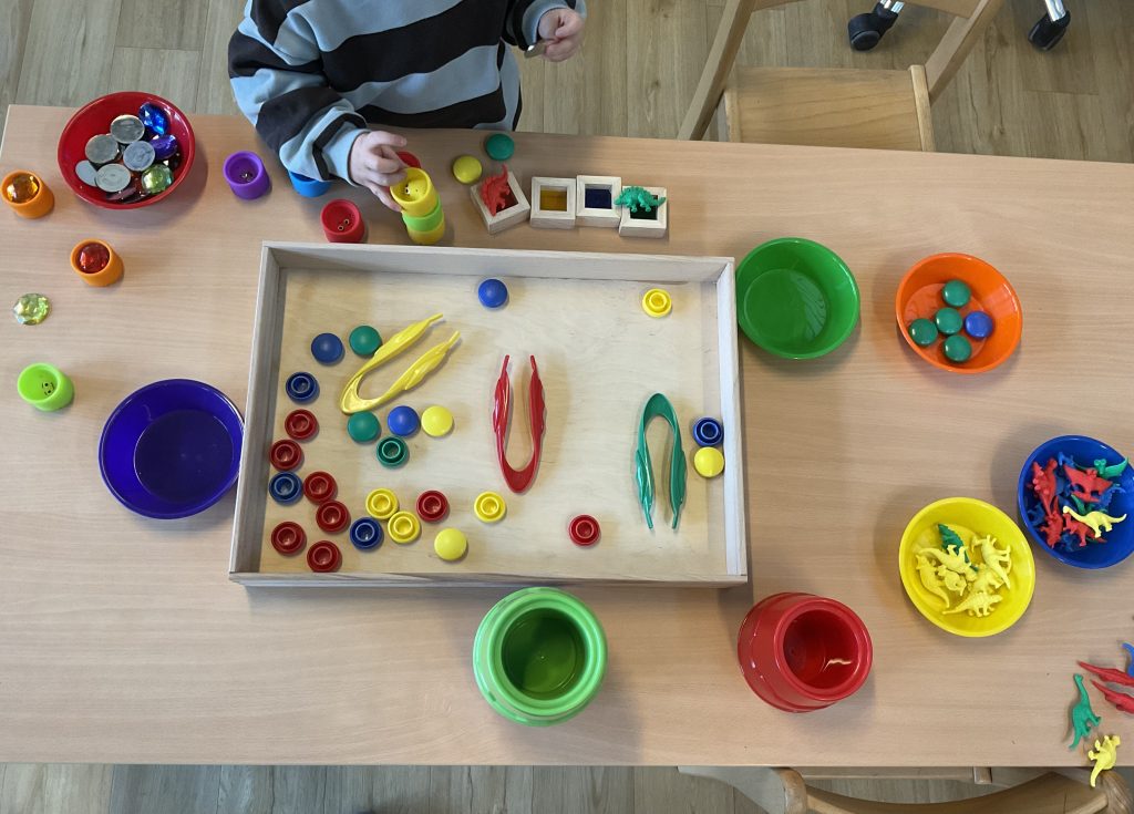 Een mooi voorbeeld van spelend leren. De fijne motoriek wordt hier spelenderwijs gestimuleerd.