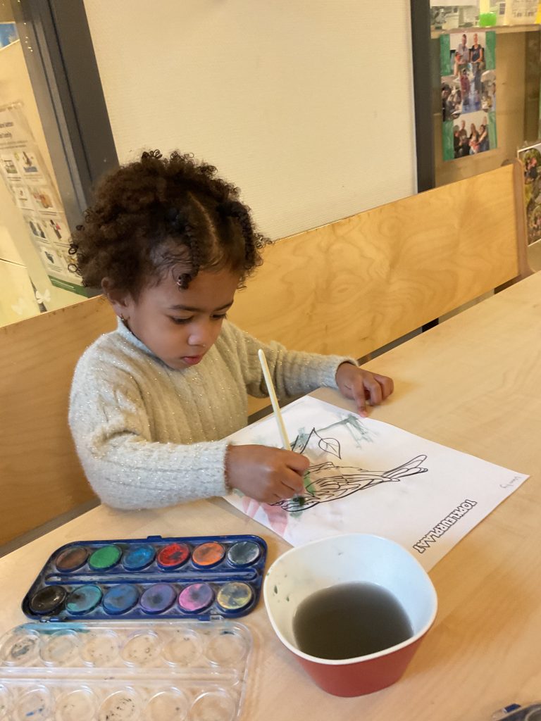 We maken bewust elke dag ruimte voor zelfstandig boeken lezen. Vaak gaan kinderen zelf eerst ontdekken, daarna laten ze boekjes aan ons zien en gaan we samen het verhaal lezen of vertellen.