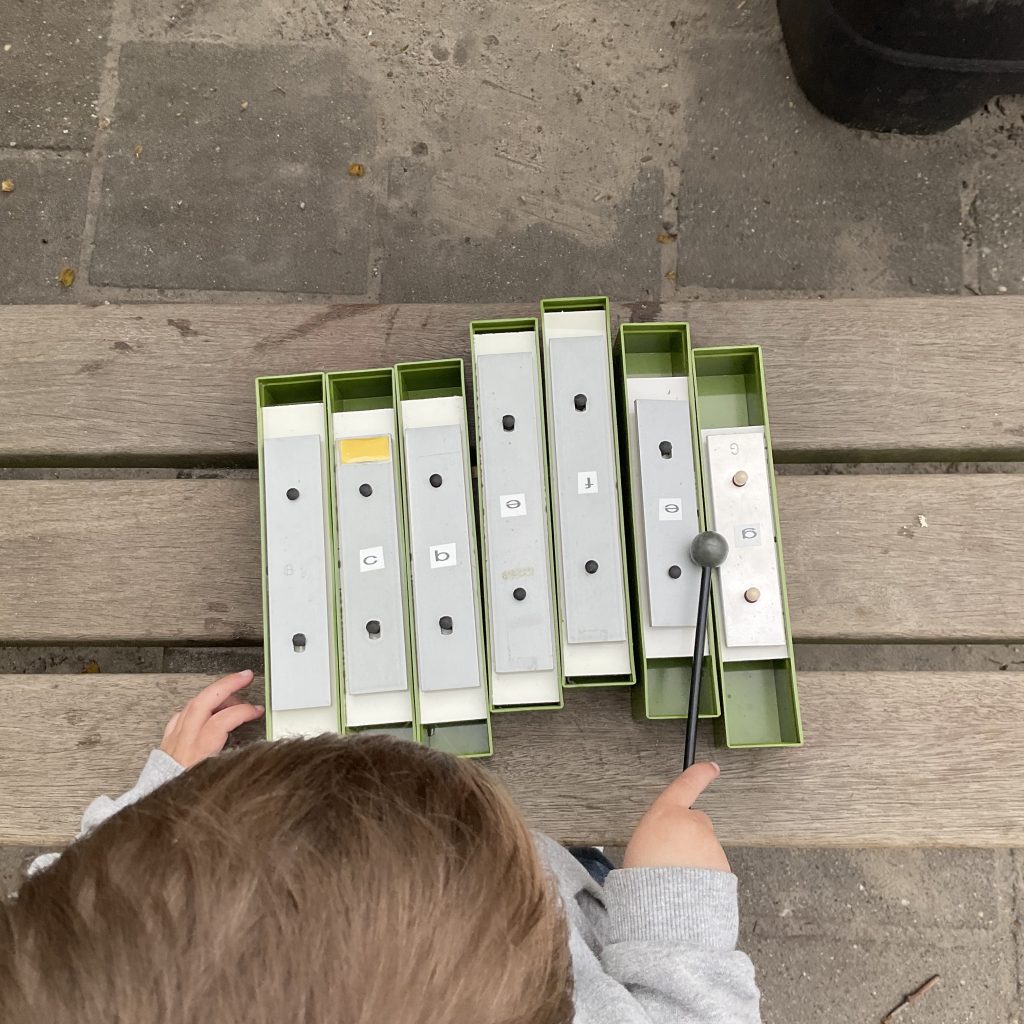 Buiten maken we muziek. En deze dreumes? Die zorgde voor een vrolijk deuntje waar je meteen blij van wordt.