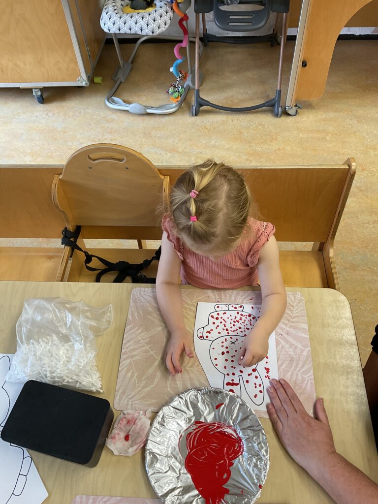 De kinderen hadden het druk met herfstbladeren. Een beetje water op het raam en plakken maar. Hoe kan dat nou? Vol verwondering gingen ze aan de slag. Zo hebben we buiten en binnen herfst. Gezellig!