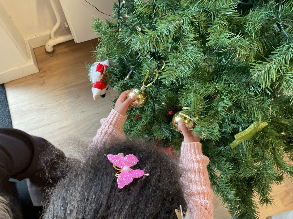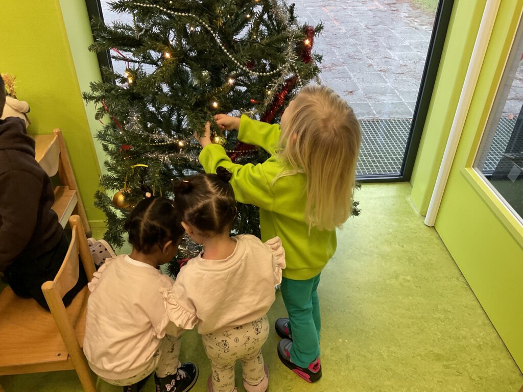 Sinterklaas is weer naar Spanje, dus vandaag versieren we de kerstboom! Ballen, lichtjes en slingers… de peuters kiezen helemaal zelf wat er in de boom komt. Het is een echte peuterboom geworden!