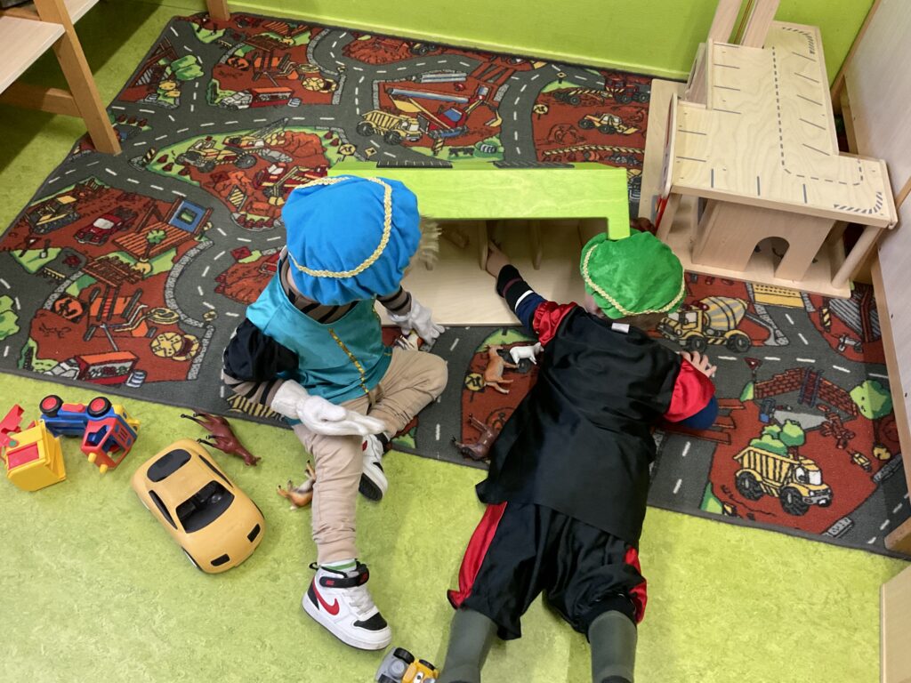 Twee kleine Pietjes die heerlijk samen kunnen spelen. Met de auto’s en de garage, met de dieren in de stal of gewoon verkleden als Sint en Piet!