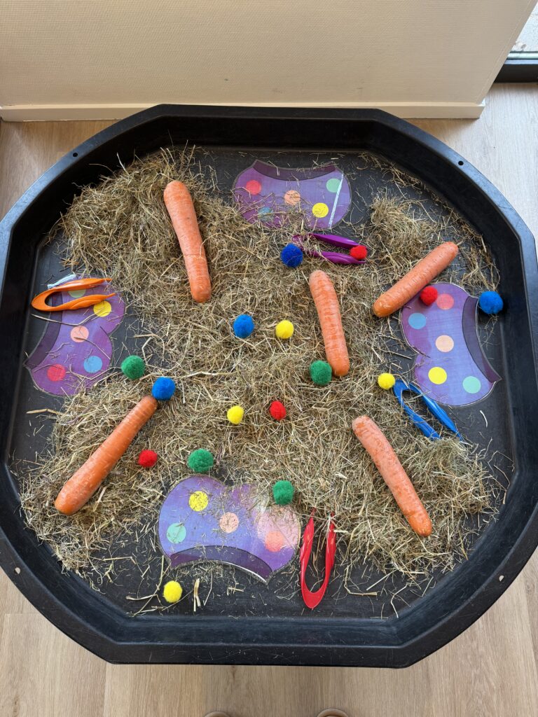 Een activiteit aanbieden in onze thematafel. De tafel staat het hele project op de groep.