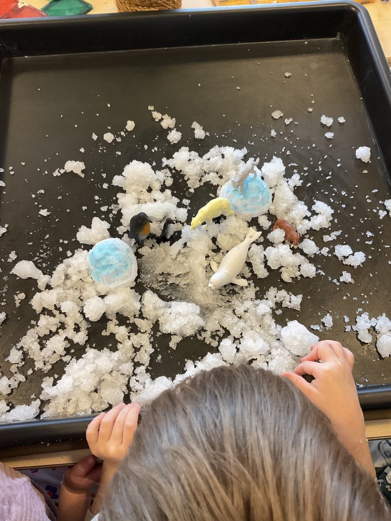 Wij hebben zelf sneeuw gemaakt. Want buiten is de sneeuw gesmolten. Wij halen de Noordpool naar binnen. Samen spelen , ontdekken , fantaseren en beleven!