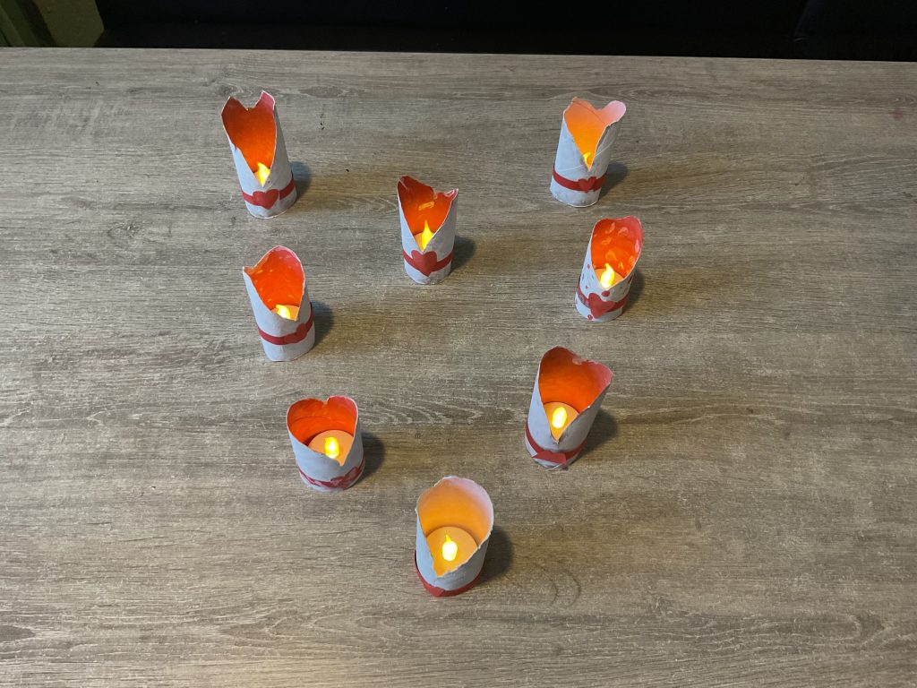 De oudste kinderen hadden zin om te verven. Ze kozen zelf de kleur van het papier en de verf. Dat leverde prachtige, eigen kunstwerken op.