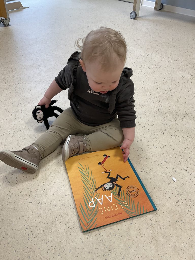 De Nationale Voorleesdagen zijn weer gestart . Ook bij ons lezen we samen met de kinderen het boek Kleine Aap. De kinderen lezen mee, bladeren zelf door het boek én spelen met het Kleine Aapje erbij. Zo komt het verhaal echt tot leven.