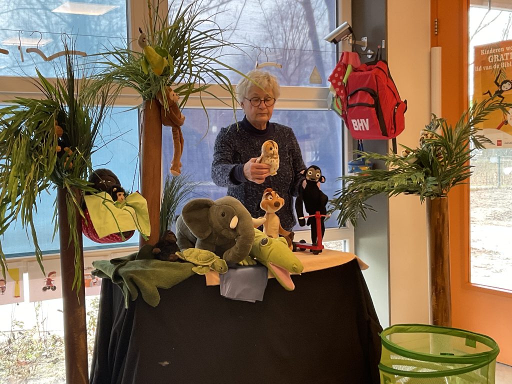 De peuters hebben een voorstelling gehad over kleine aap. Na afloop mochten we ook nog even alle dieren aaien.