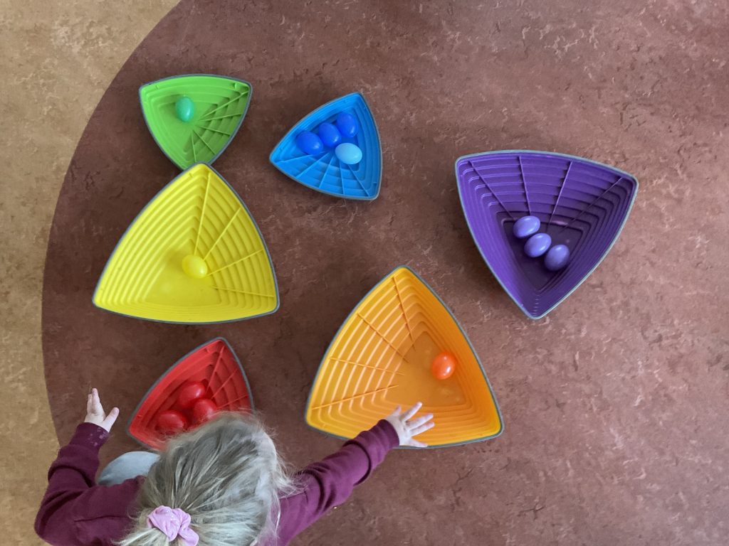 We sorteren de eieren op kleur.