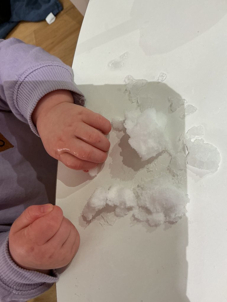 Brr wat is het koud en glad buiten. Daarom maken wij samen binnen sneeuw van baking soda om mee te spelen. En wat is dat leuk om te ontdekken. We maken er zelfs sneeuwballen en sneeuwpoppen van!