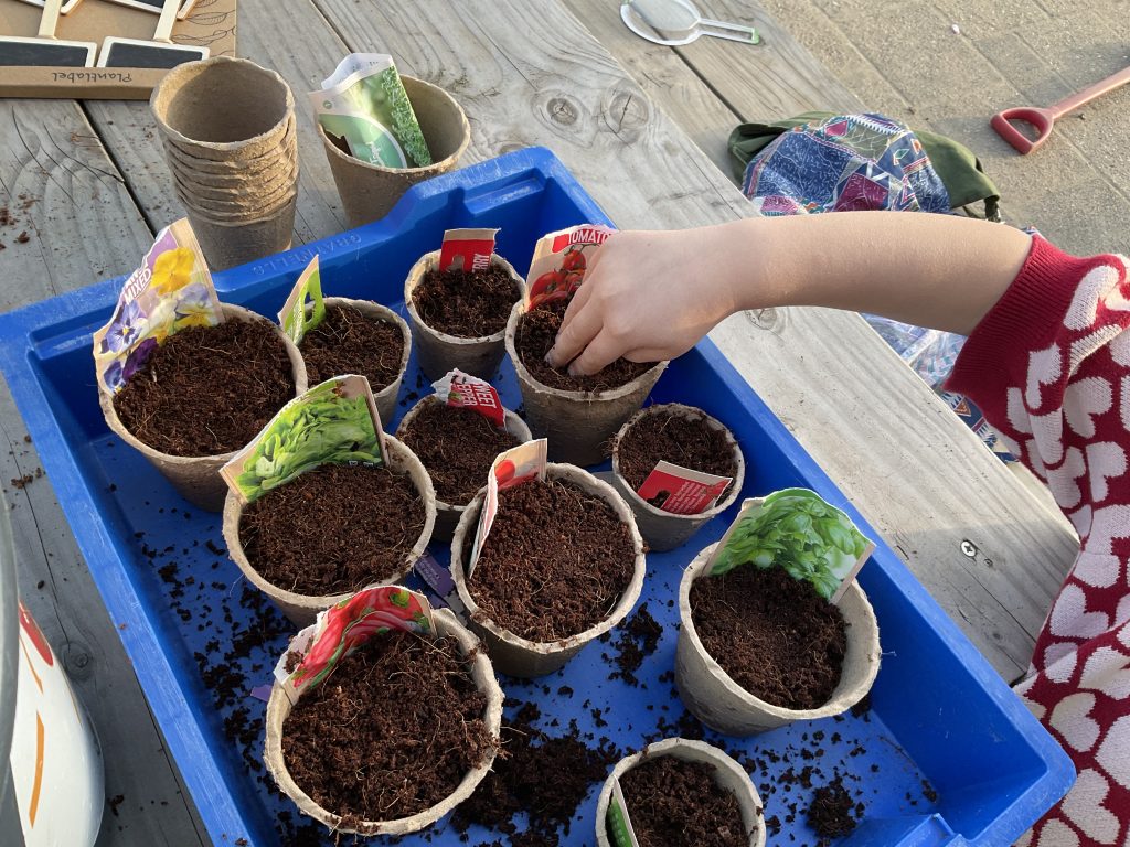 Juist, groenten! Samen gingen we aan het tuinieren. De één deed het zand in de pot, de ander de zaadjes. “Hey, de zaadjes van de paprika zijn hetzelfde als aan de binnenkant!” ontdekte een kind. Mooi om samen zo te ontdekken.