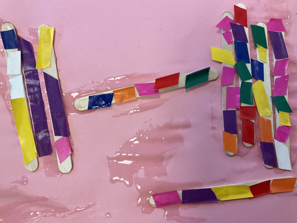 We maken tulpen van groente. Kijk, die van mij blijft staan! En daarna… mmm, lekker proeven natuurlijk.