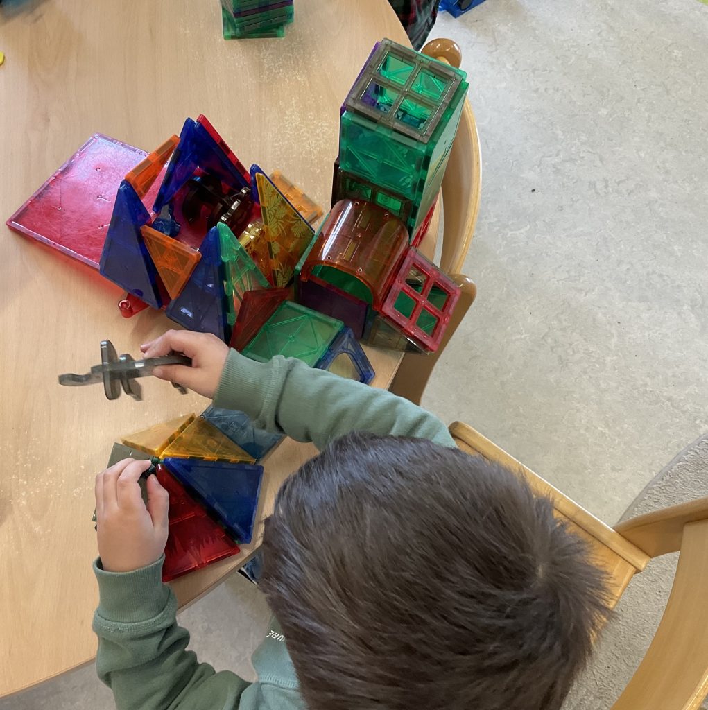 Met constructiemateriaal kunnen kinderen zich helemaal uitleven. Peuters maken de mooiste creaties. Dit jongetje heeft met magnatiles (magneetschijven) een prachtig bouwwerk gemaakt!