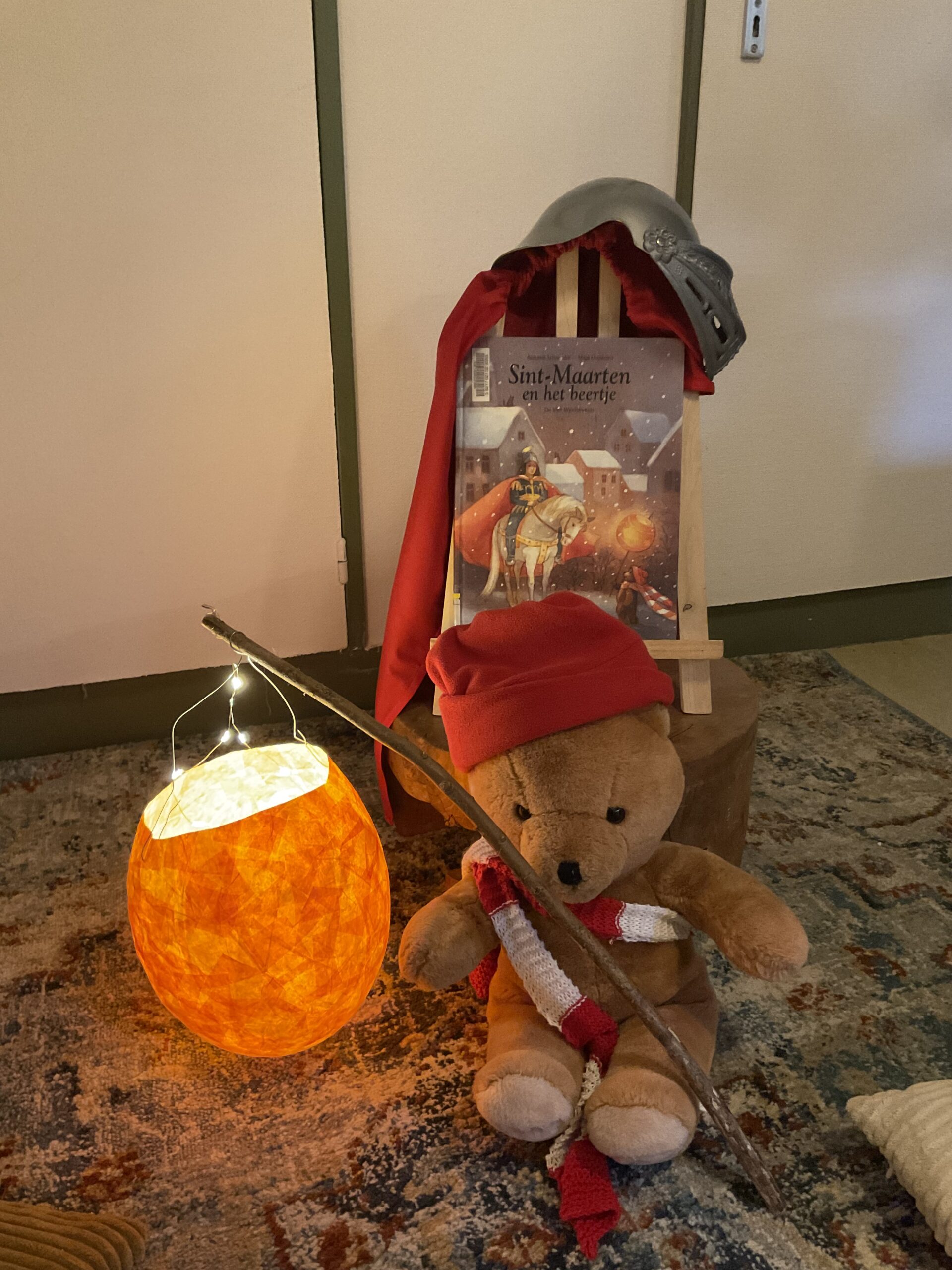 Op de peutergroep (Velduil) van Villa Doomijn in Groningen, lezen we het verhaal van “Sint Maarten en het beertje” interactief voor. Er is een beertje en een lampionnetje klaargezet. ‘Dat wordt vast en zeker gezellig!’